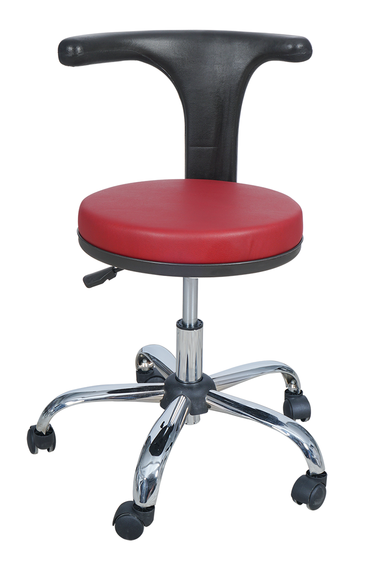 Medical Doctor Stool with T Shaped Backrest (Claret Red)